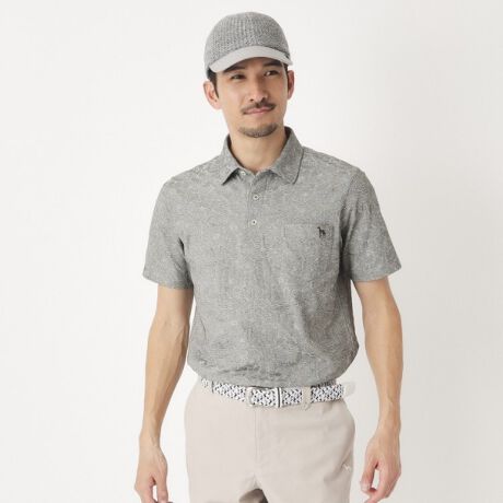 吸水速乾性に富んだボタニカル柄ジャカードの半袖ポロシャツは、