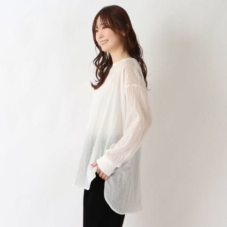 前後差のある丈と、ややゆとりのあるサイズ感で、気になる腰回りがすっぽり隠れるのも嬉しいポイント。