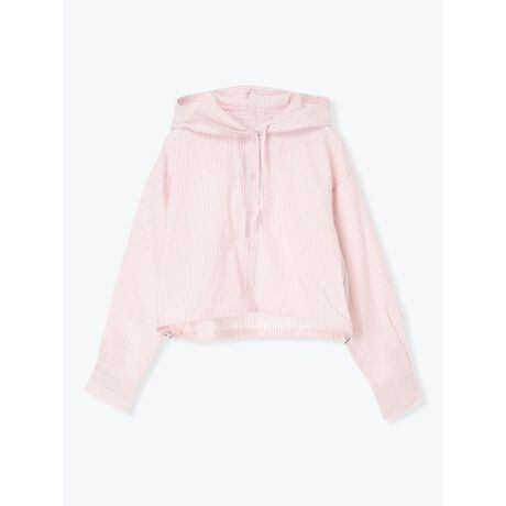 [型番:26560778574]爽やかなストライプ柄が目を惹く、フード付きのドロストシャツ。裾のドローストリングでシルエットを調整でき、コンパクトにもラフにもアレンジが楽しめます。デニムを穿いて大人カジュアルに、ワイドパンツやスカートと合わせてきれいめミックスもおすすめです。軽やかな素材感で季節の変わり目に取り入れやすい、着回し力の高い万能アイテムです。