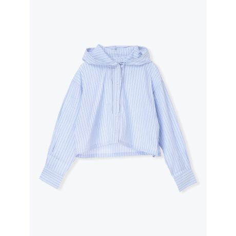 [型番:26560778574]爽やかなストライプ柄が目を惹く、フード付きのドロストシャツ。裾のドローストリングでシルエットを調整でき、コンパクトにもラフにもアレンジが楽しめます。デニムを穿いて大人カジュアルに、ワイドパンツやスカートと合わせてきれいめミックスもおすすめです。軽やかな素材感で季節の変わり目に取り入れやすい、着回し力の高い万能アイテムです。