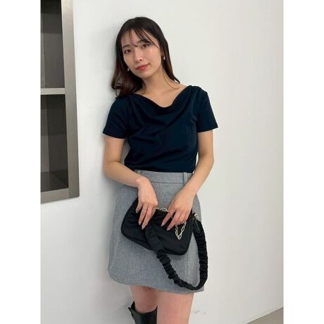 ドレープネックとしてエレガントに、オフショルダーでヘルシーな抜け感を。