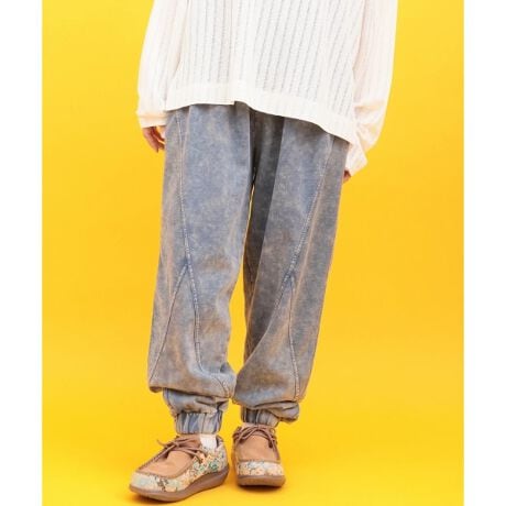 ケミカル加工×斜め切り替えで仕上げた、ヴィンテージライクなジョガーパンツ。