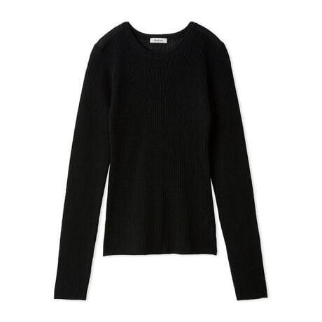 程よく身体にフィットするシアーニットトップスは、すっきりとしたリブ編みでお作りしました。
