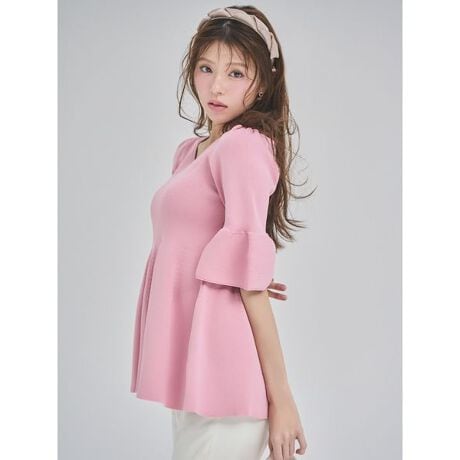 【洗える】ベルスリーブペプラムニットプルオーバー