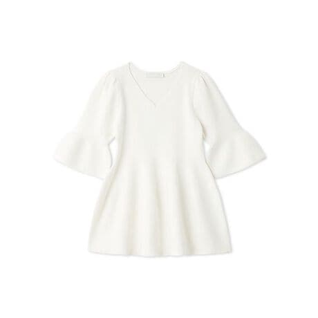 【洗える】ベルスリーブペプラムニットプルオーバー