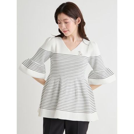 【洗える】ベルスリーブペプラムニットプルオーバー