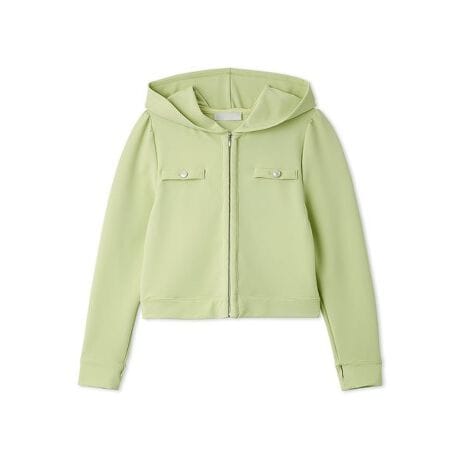 ツイードジャケットのような胸ポケットがエレガントな印象に。1枚仕立てなので、カーディガンのような軽い着心地もオススメポイント。