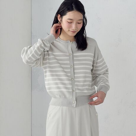 パネルボーダーカーディガンです。長すぎない丈感と、