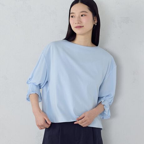 袖口にタックとギャザーで多彩な華やぎをプラスしてます。