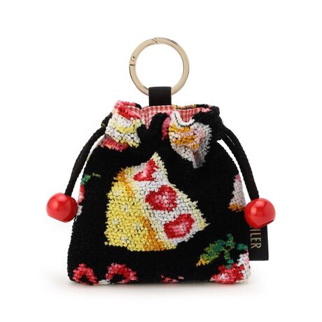 『ベリーベリーピクニック』のチャームミニ巾着です。小さくてキュートな雰囲気と、日常のちょっとした小物を持ち運ぶのに便利なサイズ感を追求しました。リング型のカラビナ付きなので、バッグのハンドルなどに付けてお使いいただけます。コーディネートのアクセントとして、お気に入りのバッグと合わせてもかわいいアイテムです。