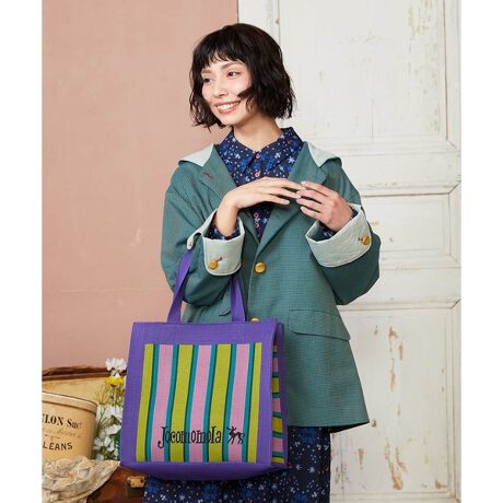 ホコモモラらしい遊び心と温かみのあるカラーリングが特徴のトートバッグ。ニットジャカード素材で表面にはドン・キホーテのシルエットを、裏面にはJocomomolaのロゴを ジャカードならではの編み柄で表現しました。ファスナーを開けるとパッと広がる、明るいポケットやマチ部分の配色にこだわった内側まで可愛いデザインが魅力のひと品です。A4サイズがすっぽり入るスクエア型なので毎日の通勤・通学はもちろん習い事にもぴったり。幅広いシーンで長くご愛用いただける優秀アイテムです。