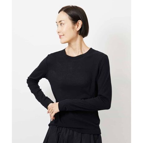 同じアイテムを2色重ねたレイヤードスタイルもおすすめ。ジャケットやカーディガンのインナーとしてはもちろん、ニットやブラウスに重ねて、襟元や袖口からさりげなく覗かせる着こなしも楽しめます。幅広いスタイリングに活躍する、汎用性の高い一枚です。 ※同素材を使用した半袖デザインもご用意しております。 シアークルーネック プルオーバー[FMKGD11120]