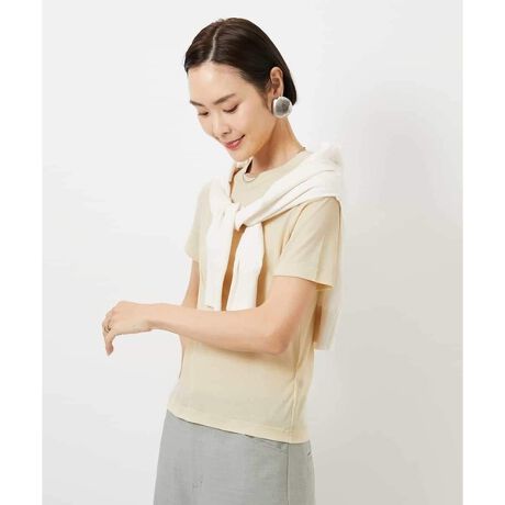同じアイテムを2色重ねたレイヤードスタイルもおすすめ。ジャケットやカーディガンのインナーとしてはもちろん、ニットやブラウスに重ねて、襟元や袖口からさりげなく覗かせる着こなしも楽しめます。幅広いスタイリングに活躍する、汎用性の高い一枚です。 ※同素材を使用した長袖デザインもご用意しております。 シアークルーネック ロングスリーブ プルオーバー[FMKGD12130]