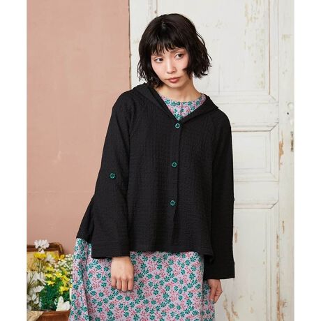 シンプルでデイリー使いにぴったりなパーカー。前後の丈に5センチ差をつけ、ストレスフリーな着用感のAラインシルエットがポイントです。ラグランスリーブでよりカジュアルな雰囲気に。前開きボタンデザインでレイヤードしやすいのも魅力です。袖の内側のタブと花の形の配色ボタンを付けてロールアップでき、気温感に合わせて調節できる仕様。