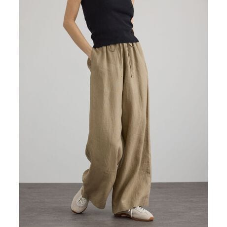 リネン生地を贅沢に使用した、エフォートレスな雰囲気漂うワイドパンツ。