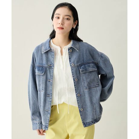 ・落ち感のある風合いで身体に自然に馴染み、デニムでもメンズライクになりすぎない一着・着ぶくれしにくく、オーバーサイズながらすっきりとした印象・生地の柔らかさも相まって、リラックス感のある着心地・腰回りをカバーするミドル丈で、ボトムを選ばず着回しやすいデザイン