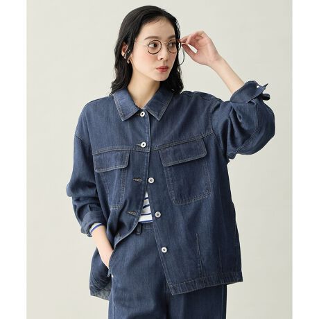 ・落ち感のある風合いで身体に自然に馴染み、デニムでもメンズライクになりすぎない一着・着ぶくれしにくく、オーバーサイズながらすっきりとした印象・生地の柔らかさも相まって、リラックス感のある着心地・腰回りをカバーするミドル丈で、ボトムを選ばず着回しやすいデザイン