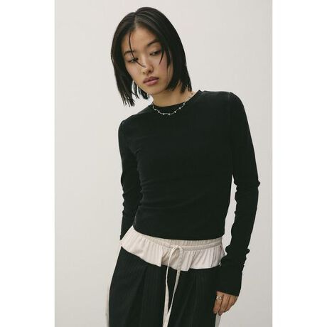 BEG:モデル身長163cm(Mサイズ着用)BLK,L/BRN,BLU:モデル身長166cm(Mサイズ着用)パウダーブリーチ加工で程よい抜け感を出したトップス。テンションのあるフィット素材を使用しており、身体に沿うシルエットがトレンド感を演出します。加工感のある生地がこなれた印象をプラスし、デイリーコーデからトレンドスタイルまで幅広く活躍。1枚で主役になりつつ、レイヤードにも使いやすいアイテムです。透け感なし、ストレッチあり。【お手入れ方法】マシンウォッシュ可