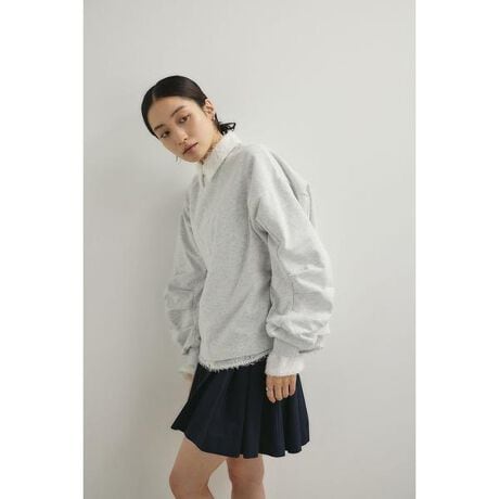 RED,C.GRY:モデル身長175cm(FREEサイズ着用)L/GRY:モデル身長160cm(FREEサイズ着用)袖にタックを入れることで立体感を持たせたスウェットトップ。シンプルなデザインながらもシルエットにニュアンスが加わり、カジュアルになりすぎず洗練された印象に導きます。柔らかなスウェット素材で着心地が良く、デイリーに取り入れやすいのも魅力。デニムやスラックスと合わせて幅広いスタイリングを楽しめる、万能な一枚です。ストレッチあり、透け感なし。【お手入れ方法】マシンウォッシュ可