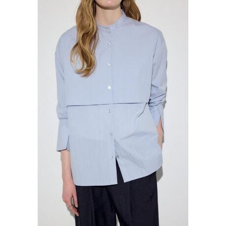 ■レイヤードバンドカラーシャツ■ポイントレイヤード風デザインで、1枚で着映えが叶うモードなブラウス。オン・オフ問わず取り入れやすい万能ブラウス。■ディテールフロントに重ねたレイヤードデザインが立体感を生み、シンプルながら存在感のある1着。程よくハリのある素材でシルエットをきれいにキープし、甘くなりすぎない大人バランスに仕上げています。ヒップにかかる丈感で体型カバーもしやすく、前を開ければ軽い羽織としても活躍。■スタイリングスラックスやタイトスカートと合わせて、きれいめな通勤スタイルに。デニムと合わせれば、レイヤードデザインが映える大人カジュアル。ワイドパンツと合わせて、縦ラインを意識したモードな着こなしもおすすめ。ジャケットのインナーとしても映えるデザインで、オフィスシーンにも活躍します。■生地ナチュラルワッシャー感のある綿ナイロン素材を使用。透け感:多少あり裏 地:なし伸縮性:なし光沢感:なし[注意事項]※画像の商品はサンプルです。実際の商品と仕様、加工が若干異なる場合があります。※画像の商品は光の照射や角度、お使いのモニター環境により、実物と色味が異なる場合がございます。※着用、お取り扱いの際は、アテンションタグをご確認ください。