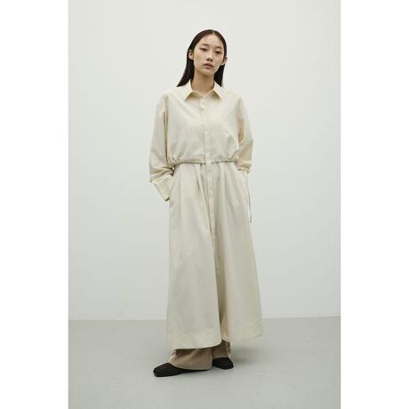 IVO:モデル身長163cm(Mサイズ着用)MINT,C.GRY:モデル身長166cm(Mサイズ着用)レイヤード風デザインがポイントの一枚でこなれた印象になれるシャツワンピース。ドライタッチの素材を使用し、快適さを叶えた一枚。後ろアームホールを深めにくりを入れたフォルムスリーブがモード感をプラス。サイドウエストリボンでギャザー分量を調整でき、シルエットをお好みにアレンジいただけます。ポケットあり。透け感IVOY,MINTややあり、ストレッチなし。【お手入れ方法】マシンウォッシュ可