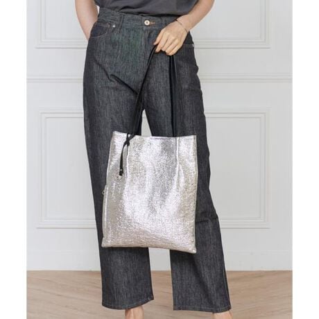 メタリックツマミハンドルフラットトートバッグ/A4対応《COOCO/クーコ》