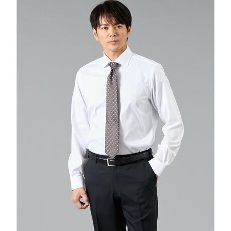 程よくストレッチ性のある生地を使用した、スリムフィット仕様のドレスシャツ。体に自然に沿うシルエットながら、動きやすく快適な着心地を実現しています。さりげないシャドーストライプが、ホワイトシャツに上品な表情を添える一着です。