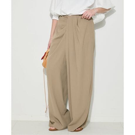 上品なドレープと立体的なシルエットが魅力のラップパンツ。