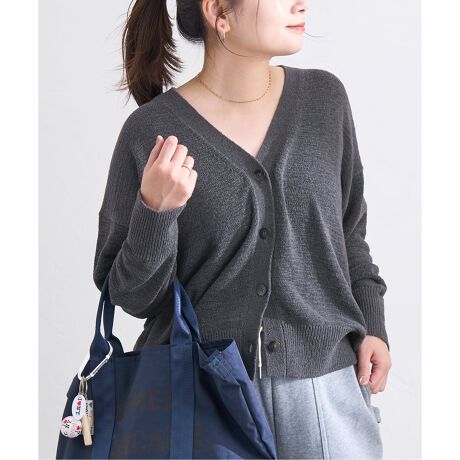 通常の糸よりも表面積が広い、平たいリボン状の糸「テープヤーン」を使用したカーディガン。
