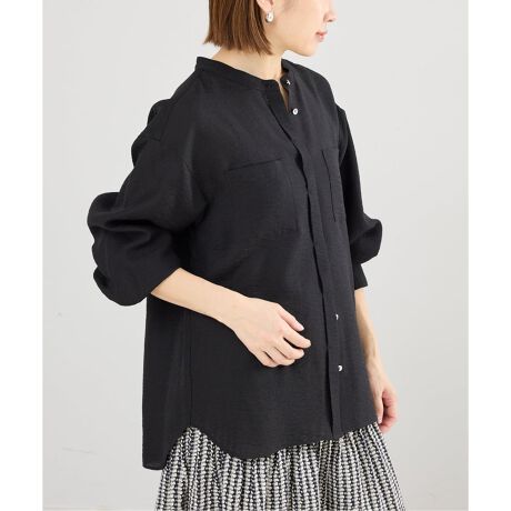 ジャカード織りで表情を持たせた、上品なバンドカラーブラウス。