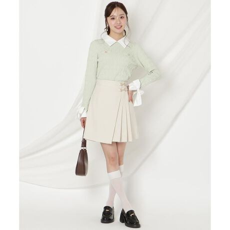 きちんと感と可愛さを兼ね備えた、ビットデザインプリーツミニスカパン【Design】・フロントにあしらったビットデザインが、クラシカルなアクセントをプラス。・プリーツ仕立てのスカート風デザインで、動きのあるシルエットに。・内側はショートパンツ仕様のスカパンタイプなので、安心できる着用感です◎・ミニ丈ながら、きれいめにもカジュアルにも合わせやすいバランスに。・ニットやブラウス、ジャケットまで、幅広いトップスと相性の良い1枚です。【Fabric】・程よくハリのある素材感で、プリーツの立体感をきれいにキープ。・エクリュ、ベージュ、ピンクの3色展開となります。【Care】ドライクリーニング