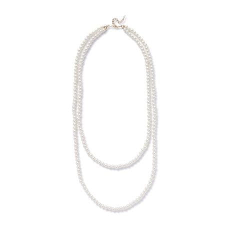 洗練された2連パール調ネックレス。キレイなバランスで見える2連デザインで、華やかなアクセントにぴったり。キレイめスタイルからカジュアルなデニムスタイルまで使いやすいアクセサリーです。