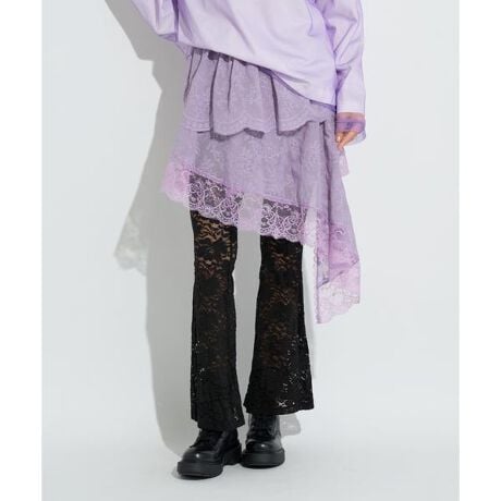 繊細な刺繍レース生地を贅沢に使用した、アシンメトリーデザインのレーススカート。