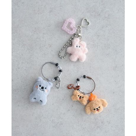 手のひらにすっぽり収まるふわふわのアソートマスコットチャーム。ベージュのわんこ、淡ピンクのビーズハートやグレーのくまなど、クリアチェーンやアルファベットビーズが揺れて視線を集めます。ポリエステルの柔らかな毛並みとステンレスリングで軽やか&丈夫、バッグやキーにつけるだけで日常に愛らしい遊び心と個性がプラスされ、ギフトにも最適です。デニムトートやミニショルダー、キーケースに合わせてアクセント使いに、気分でチャームを変えて季節感を楽しんで。