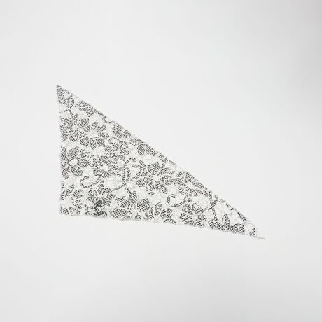 大きな花柄のようなレースデザインが目を惹くトライアングルシェイプのスカーフ。