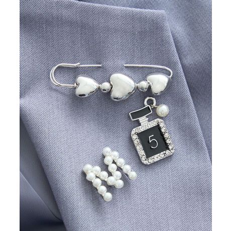 胸元にきらめくおしゃれなアクセント印象的なモチーフを集めたブローチセットです。ハートやパール、香水ボトル風デザインがそれぞれ異なる魅力を放ち、コーディネートのアクセントとして活躍します。シンプルなトップスやアウターに添えるだけで、トレンド感のあるスタイルが完成します。複数を重ねて華やかに仕上げたり、ひとつだけをポイント使いしたりと、アレンジの幅が広いのも魅力です。バッグや帽子に付けるなど、使い方次第でさまざまな表情を楽しめます。季節を問わず取り入れやすく、デイリーから特別な日まで幅広く使える万能アイテムです。装いにさりげない輝きと個性をプラスしてくれます。※モデル着用画像は、光の当たり具合で色味が違って見える場合がございます。※お使いのモニター環境によって商品の色味が違って見える場合がございます。