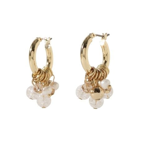 耳元に咲く、上品ビーズのきらめきさまざまなビーズをミックスしたデザインが目を引く華やかなピアスです。ゴールドのフープに異素材のビーズをあしらい、立体感と動きのあるシルエットに仕上げています。透明感のあるパーツとパール調のやさしい輝きが調和し、上品で洗練された雰囲気を演出します。顔まわりにほどよいボリュームをプラスできるため、小顔効果も期待できます。シンプルな装いのアクセントとして取り入れるだけで、いつものコーディネートが一気に華やかになります。通勤やお出かけ、セレモニーなど幅広いシーンで使いやすく、季節を問わず楽しめるのも嬉しいポイントです。※モデル着用画像は、光の当たり具合で色味が違って見える場合がございます。※お使いのモニター環境によって商品の色味が違って見える場合がございます。