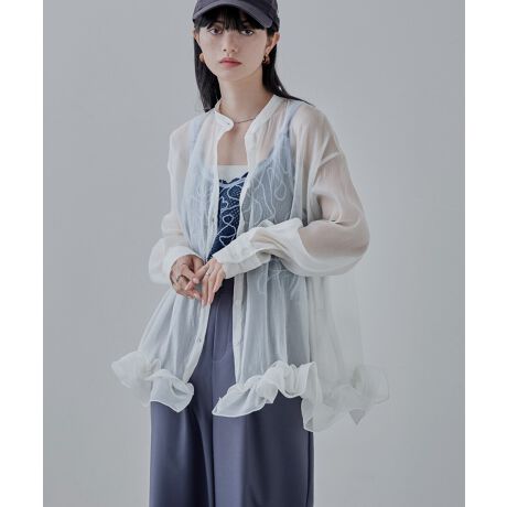 オーガンジーフリルブラウス