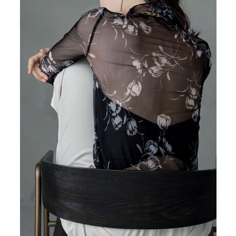 甘くない大人の女性らしさ溢れる繊細な花柄は、シンプルな装いに変化を付けモードな仕上がりへと導いてくます。