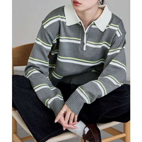 マルチボーダーショートポロニット