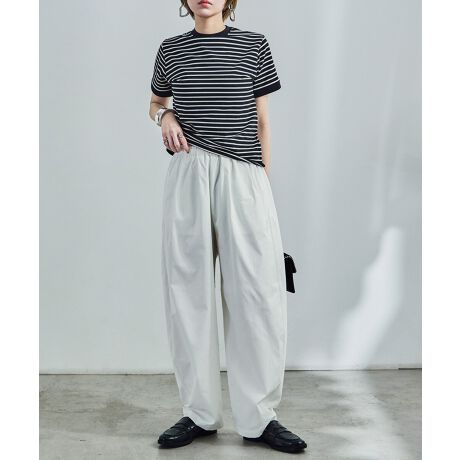 ハリのある素材感でラフになりすぎず、大人の日常使いにぴったりのコクーンパンツが登場。