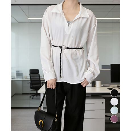 レイヤード風シャツブラウスベルト付き春服