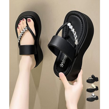 トングストラップにラインストーンをあしらったデザインのレディース厚底サンダル。