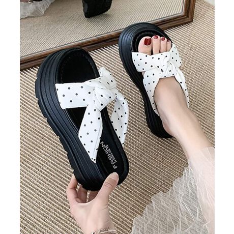 ドット柄リボン厚底サンダルレディース美脚