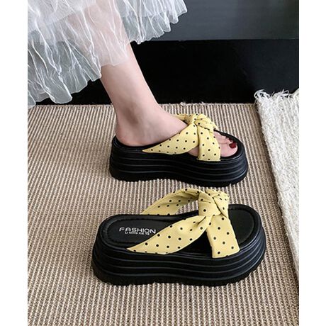ドット柄リボン厚底サンダルレディース美脚