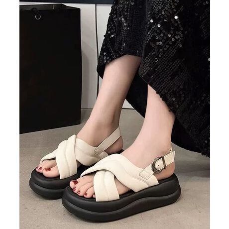 ウェーブのあるクロスストラップが足元に表情を添えるレディースサンダル。