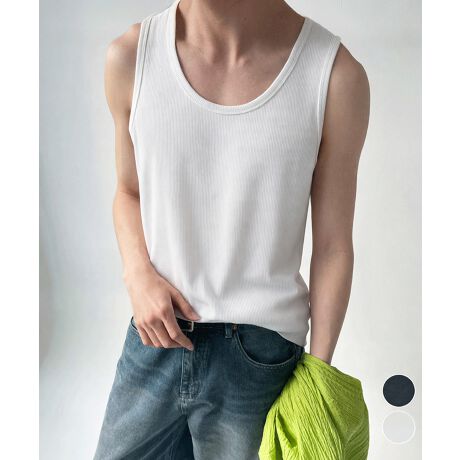 シンプルなデザインが魅力のメンズ用ノースリーブタンクトップ。