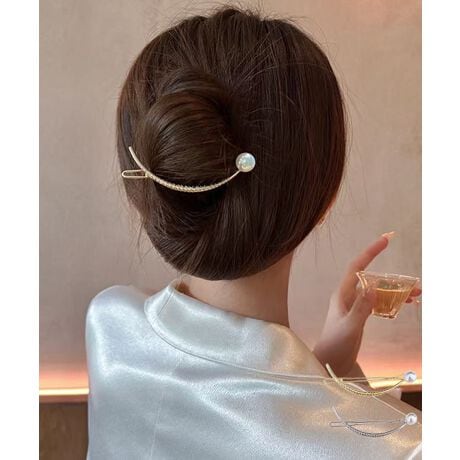 上品で洗練されたシルエットが魅力のフェイクパール付きカーブバレッタ。
