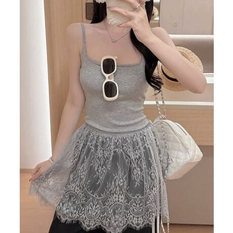 韓国っぽいムードが漂う、背中開きレースドッキングキャミソール。