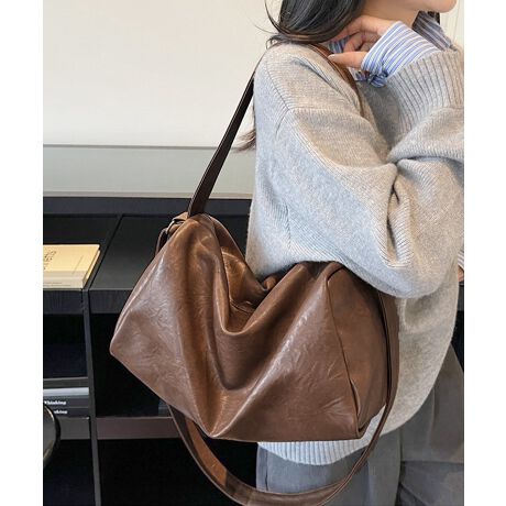 ヴィンテージライクなフェイクレザー素材を使用した、大容量のボストンバッグ。